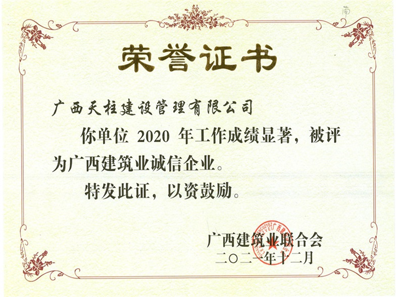 2020年广西建筑业诚信企业
