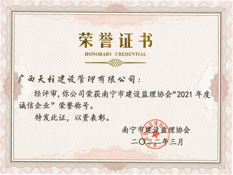 2021年度南宁市”先进监理单位“(南宁市建设监理协会)