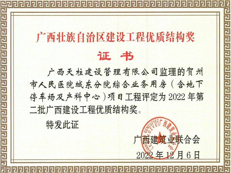 2022年第二批广西建设工程优质结构奖(贺州市人民医院城东分院综合业务用房(含地下停车场及产科中心)项目)