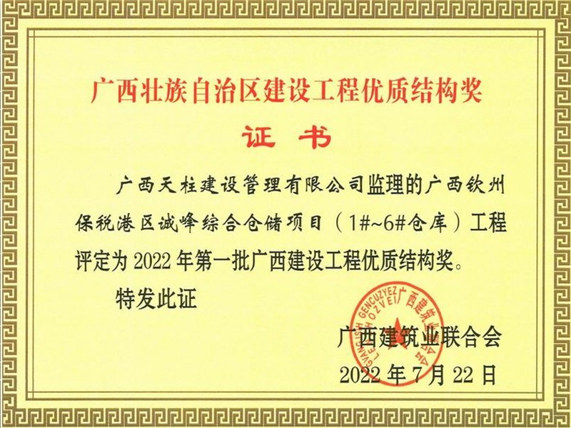 2022年第一批广西建设工程优质结构奖(广西钦州保税港区诚峰综合仓储项目(1#~6#仓库)