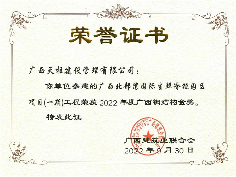 2022年度广西钢结构金奖(广西北部湾国际生鲜冷链园区项目(一期)