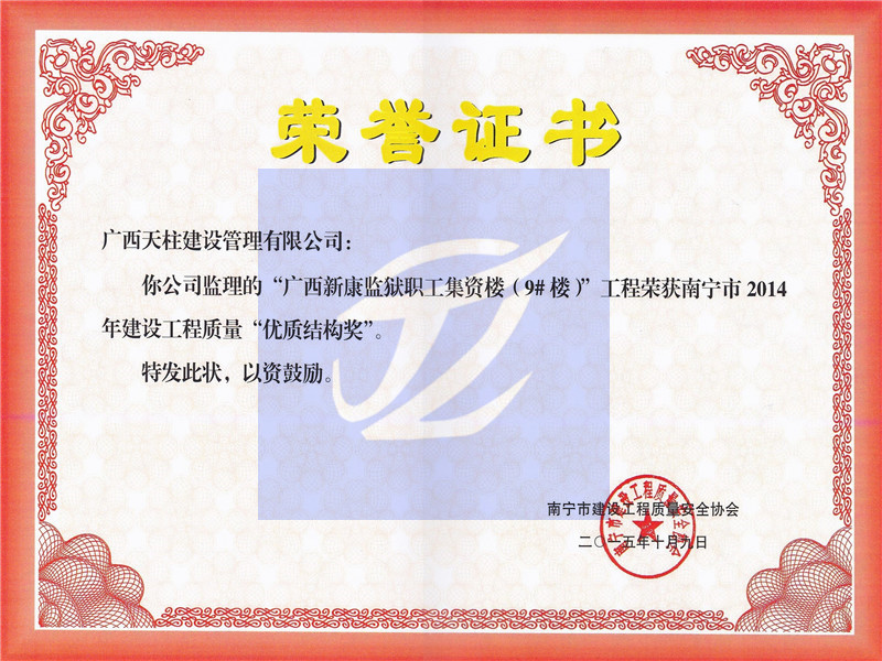 广西新康监狱职工集资楼(10#楼工程)2014年优质结构奖