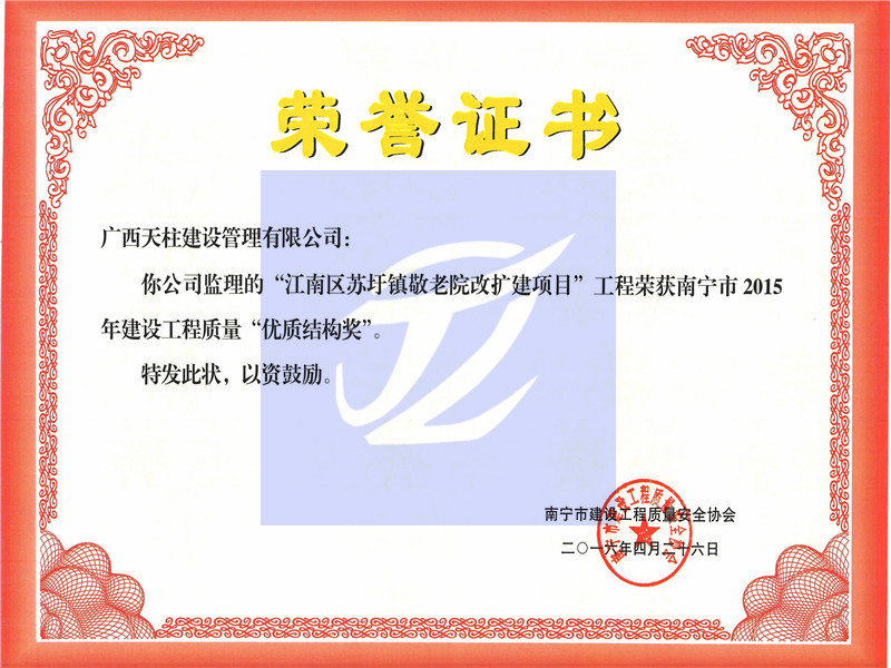 江南区苏圩镇敬老院改扩建项目南宁市2015年建设工程质量“优质结构奖”