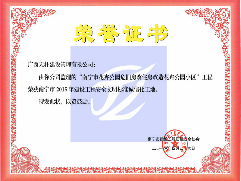 南宁市花卉公园危旧房改住房改造花卉公园小区南宁市2015年建设工程质量“优质结构奖”
