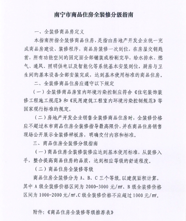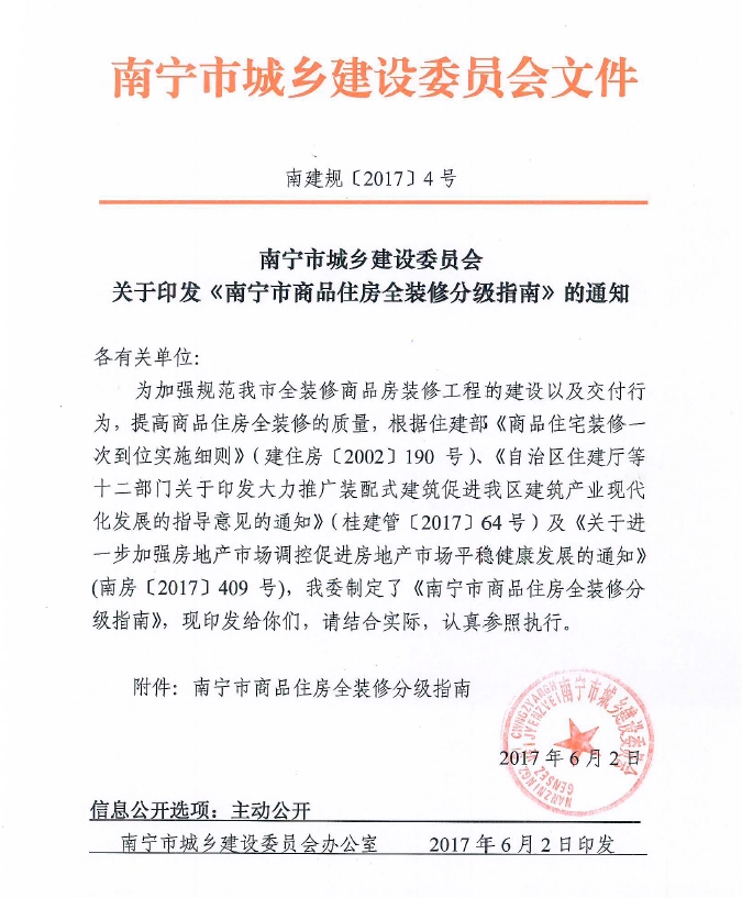 关于印发《南宁市商品住房全装修分级指南》的通知—南建规〔2017〕4号
