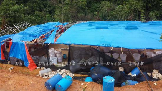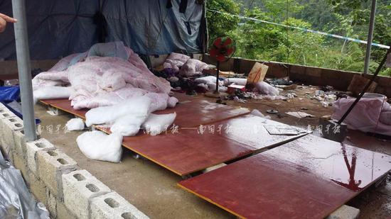 ▲制毒人员直接睡在工棚木板上,他们需要不间断制毒。