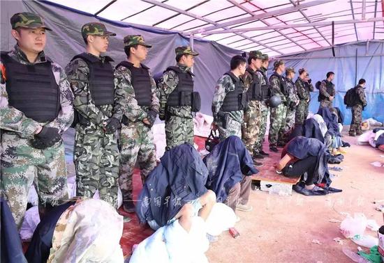 ▲办案人员在远处的山上潜伏了12天12夜,对窝点进行摸底。有时候一人一待就是三天三夜,淋雨挨饿是常事。他们通过望远镜,潜入制毒窝点附近摸排。