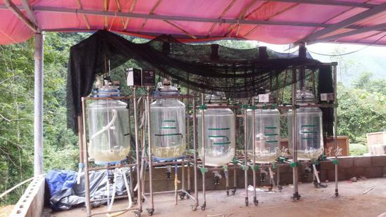 同时,该犯罪团伙还在凤山县凤城镇久文村板麻屯翻茶坡开设另一个野外制毒窝点,昼夜不停地制造毒品。6月15日,记者通过长时间山路行进,进入到制毒窝点。