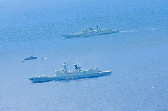 2015年12月7日,日本海自巡逻机拍摄的大庆舰通过大隅海峡照片。