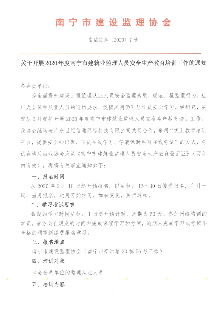 附件1:南宁市建设监理协会监理人员安全教育精品课程介绍及学习考试要求