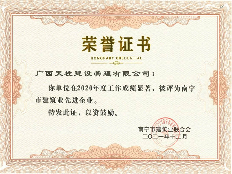 2020年广西招标投标行业先进单位(广西建筑业联合会)