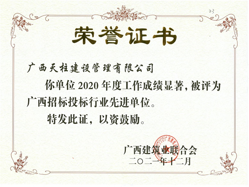 2020年广西招标投标行业先进单位(广西建筑业联合会)