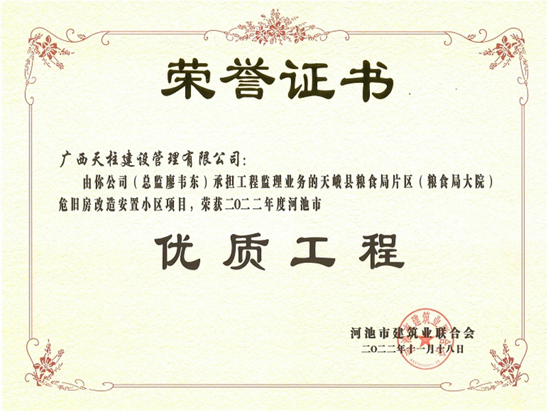 2022年度河池市优质工程(天峨县粮食局片区(粮食局大院)危旧房改造安置小区)