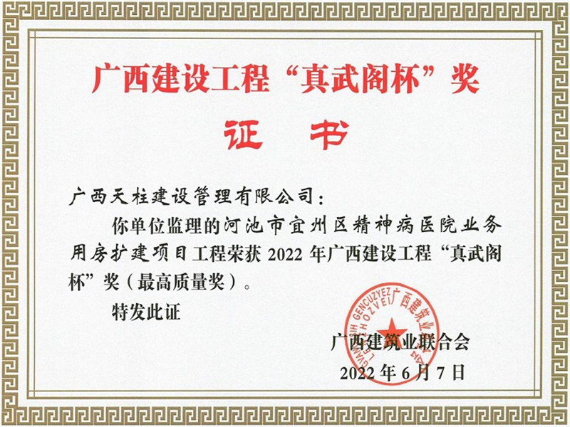 2022年广西建设工程“真武阁杯“奖(最高质量奖)(河池市宜州区精神病医院业务用房扩建项目)