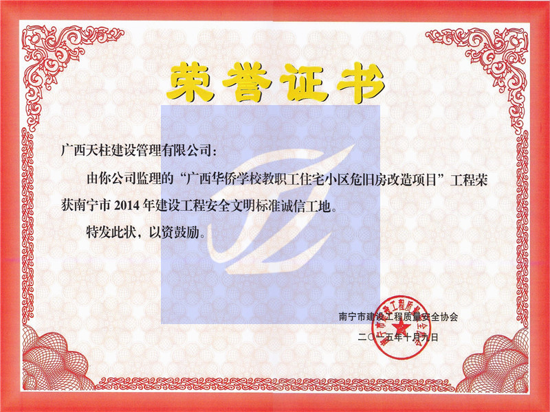 广西华侨学校教职工住宅小区危旧房改造项目2014年安全文明标准诚信工地