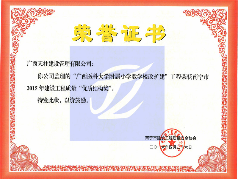 广西医科大学附属小学教学楼改扩建南宁市2015年建设工程质量“优质结构奖”