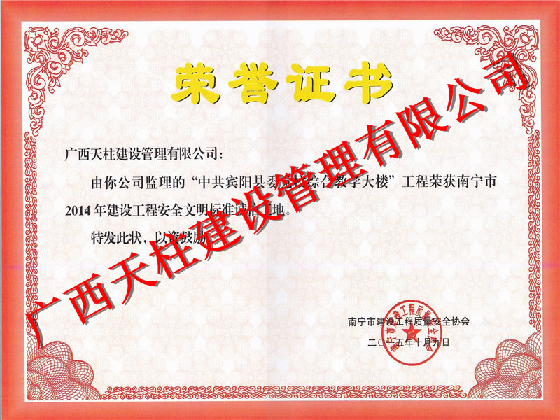 中共宾阳县委党校综合教学大楼2014年安全文明标准诚信工地