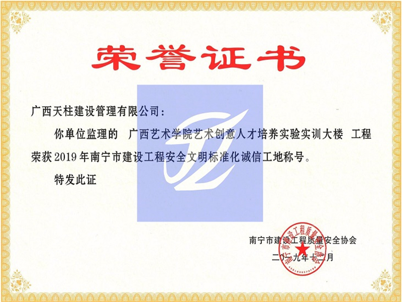 2019年南宁市建设工程安全文明标准化诚信工地 (广西艺术学院艺术创意人才培养实验实训大楼 )