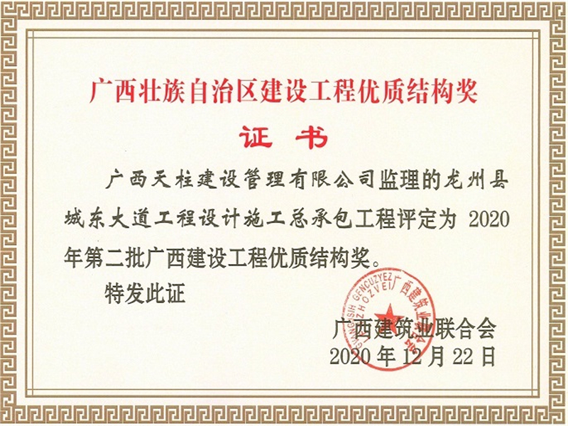 2020年第二批广西建设工程优质结构奖(龙州县城东大道工程设计施工总承包工程)