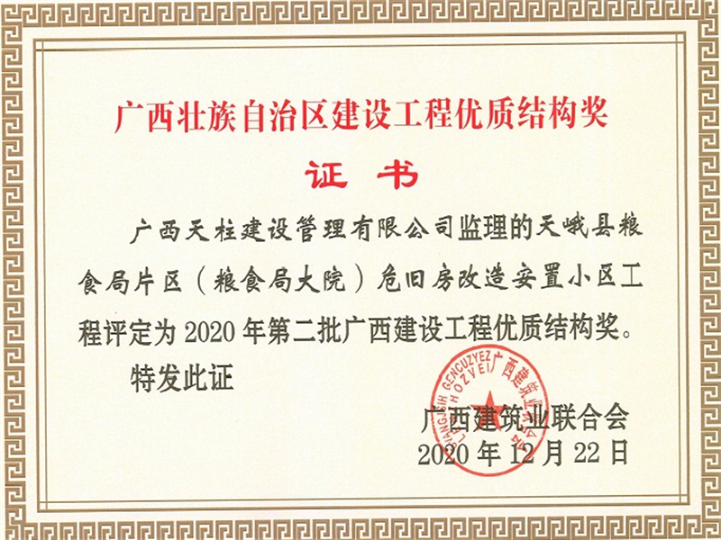 2020年第二批广西建设工程优质结构奖(天峨县粮食局片区(粮食局大院)危旧房改造安置小区工程