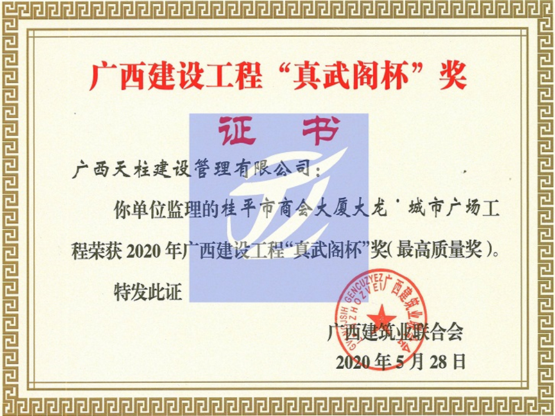 2020年广西建设工程“真武阁杯”奖(最高质量奖)(桂平市商会大厦大龙城市广场工程)