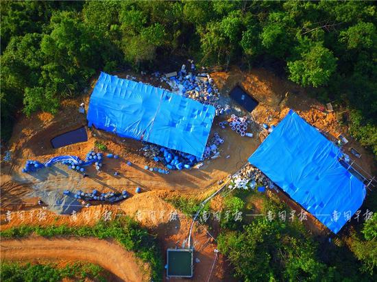 ▲位于久文村的制毒窝点隐藏在深山中,这里四面环山,只有一条小路进山,方便制毒取水和制毒人员逃跑。这些嫌疑人反侦查能力非常强,他们会安排人员在路口放哨,甚至安排人在派出所门口观察民警一举一动。一旦观察到有动静,就会立即通知窝点的制毒人员停工,并躲藏在深山里。