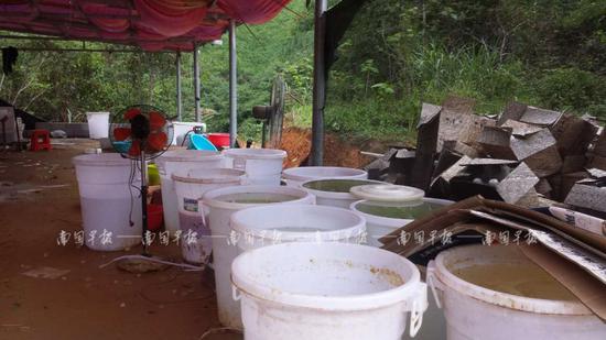 同时,该犯罪团伙还在凤山县凤城镇久文村板麻屯翻茶坡开设另一个野外制毒窝点,昼夜不停地制造毒品。6月15日,记者通过长时间山路行进,进入到制毒窝点。