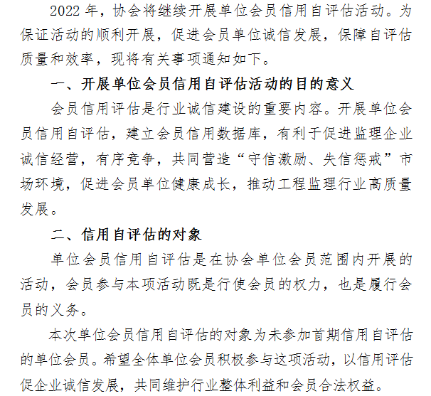 关于继续开展单位会员信用自评估活动的通知