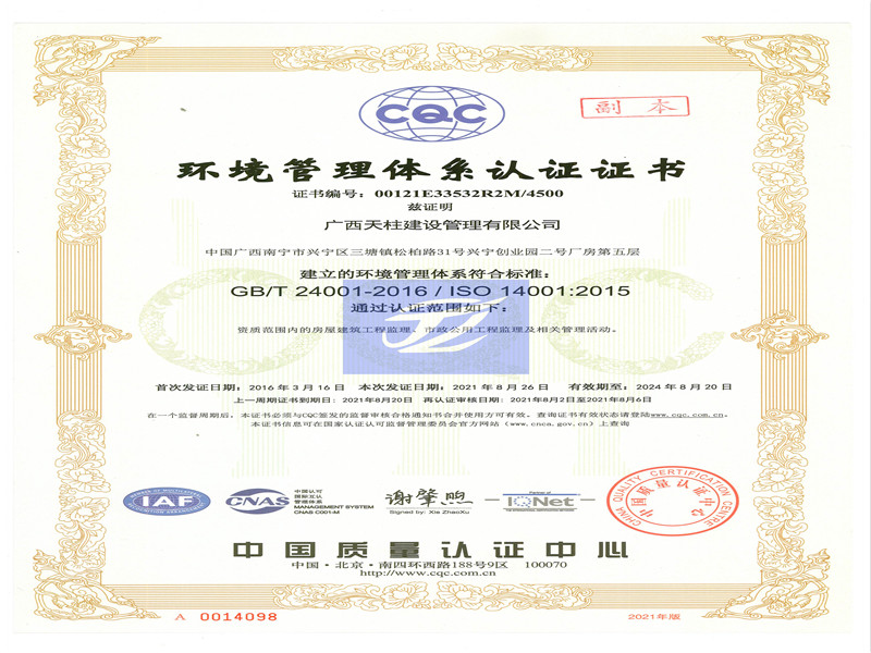 环境、质量、职业健康安全等管理系统认证证书